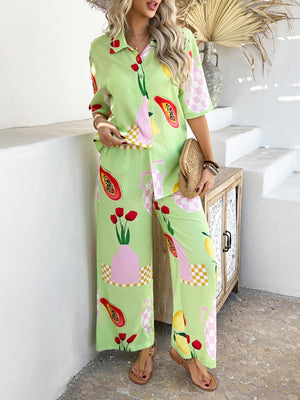 Casual Bohemian Holiday Style Contrast Print Wide Leg Trousers Set