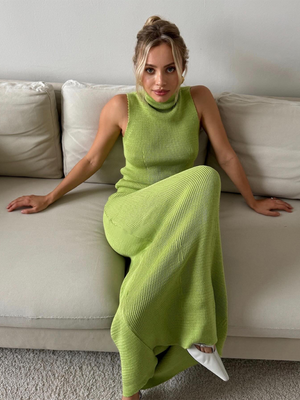 Ladies new style sleeveless high collar woolen top low waist skirt suit