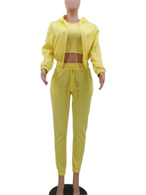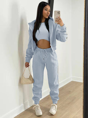 Women's Knitted Casual Sports Fleece Hooded Three-piece Suit